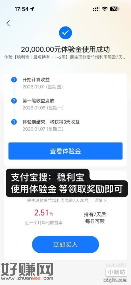 20000大概6+能兑换3万5万的也记得兑换支付宝 我的会员搜稳利宝兑换体验金20000奖励大概6+好像又可以兑换了前几天拿过继续试试