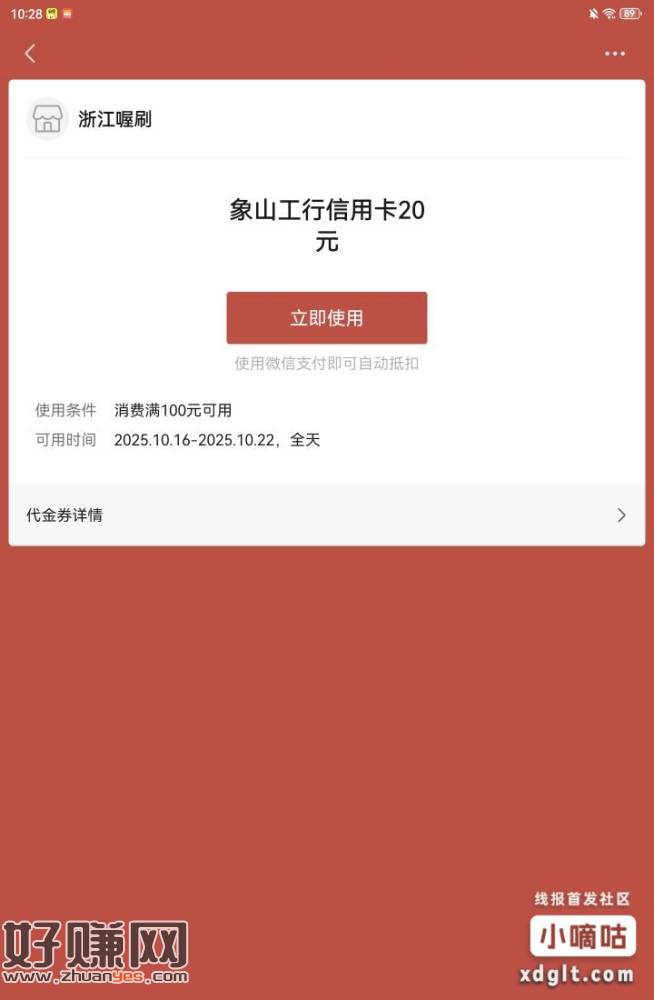 宁波#小程序://工行服务/PcgFQX0ZeyMm2An明早9点,限宁波工行卡,其他能领但不能用亲测。20 10是信用卡,5减1.5是储蓄卡
