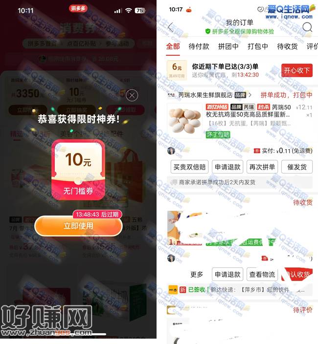 亲测0.11购16个无抗鸡蛋 拼多多百亿消费券
