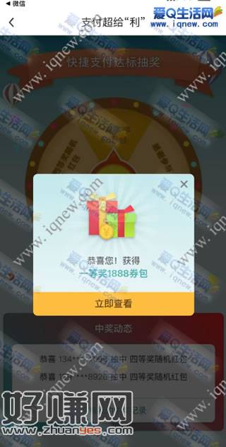 中行支付超给利抽奖 反馈1888元立减金