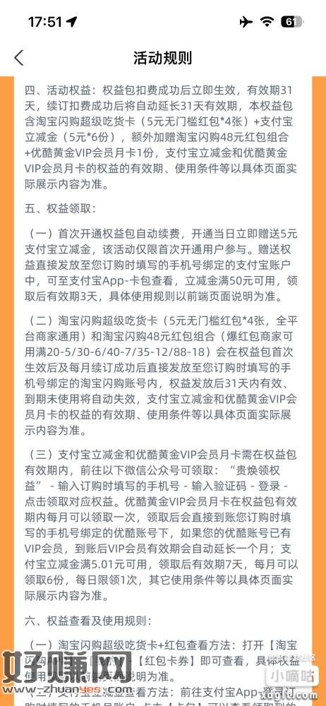 5 元立减金×6 张(满五十立减)一个月优酷会员 闪购红包今天开通不扣费,明天也就是次日扣费用了就赶紧关掉自动续费用完赶紧关掉自动扣款 要不然明天就自动扣 29 元了!!!复制链接支fb发送好友打开https://elm.vodpper.cn/ri-h5/?id ... 5120322000576328745