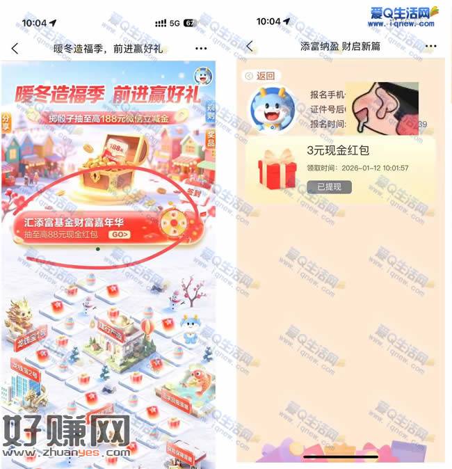 完成任务可以抽奖现金红包,我是抽到3元现金