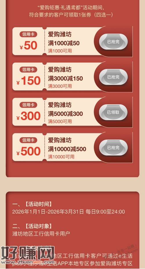 活动四抢到过一次5000-300,通用的,不过一季度只让领一次