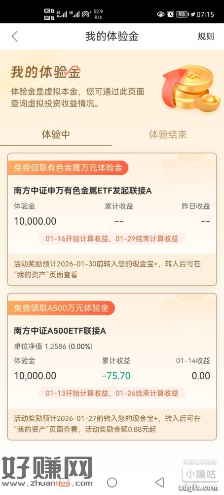 南方基金app首页活动中心有两个一万体验金