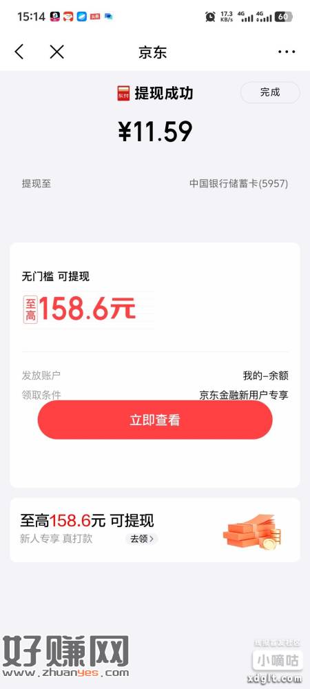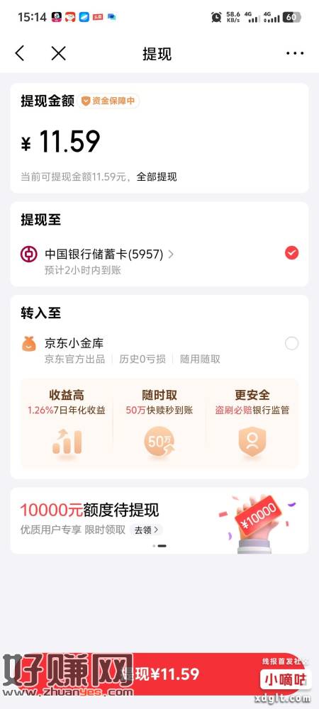 实测6.9亓現金可提现到卡,提现完成去退保