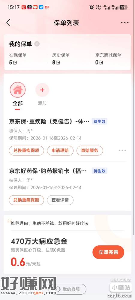 京东金融实测6.9亓現金可提现到卡,提现完成去退保金额个人不同应该是人人可参与此活动,简单领一下保险,可退保哈,免費领红包!退保教程可下拉此文查看!1、领红包:京东金融App,首页【签到】右侧【做任务】切换到【赚现金】,下拉有几个体验保险的任务,做完!2、提现到余额:京东金融【签到】页面,我的现金账户,去提现,可直接提现到账户余额!可在京东金融-我的-余额查看3、退保:京东金融App,我的,保险,左上角【我的保单】逐个去申请退保即可
