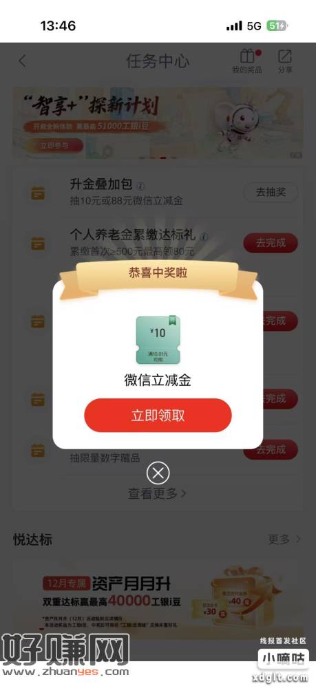 广东工行去任务中心去看看,这个升金叠加包活动,10或者88
