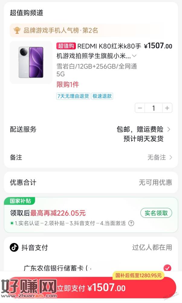 超值购,国补后1280元