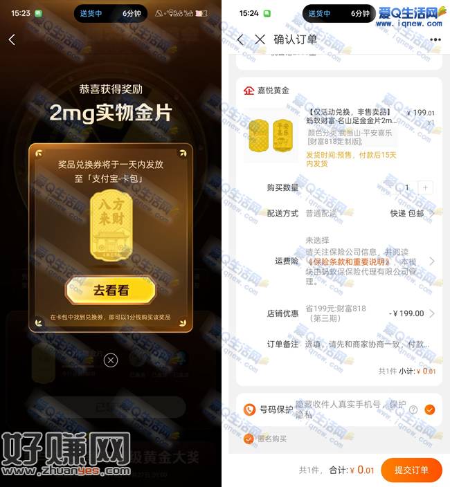 邀请3人 可以领2mg真金 秒到卡包 点击去购买即可