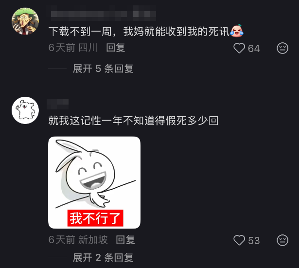 各种段子也是在评论区乱飞,有人说自己忘性大,估计以后会隔三差五假死,有人说建议广大债主让背债人都下一个,这世界上最关心安危你的就是债主了。一个让人恐惧的话题,就这么变成了互联网脱口秀大会。