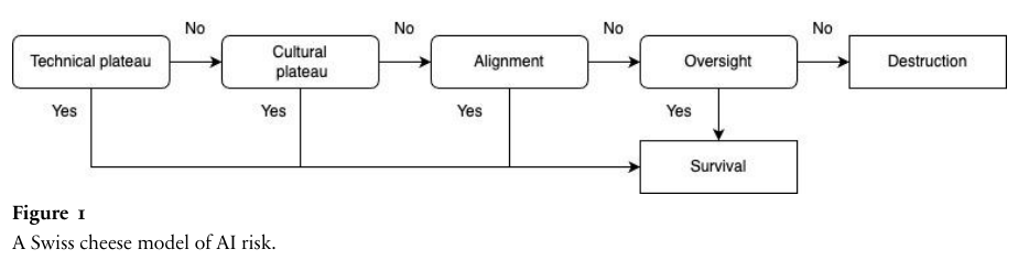 人工智能的生存故事并非孤立存在,它们往往交织在一起。我们可能在技术上遇到了一定的阻碍,同时又通过文化禁令限制了其应用,并在关键领域实施了严格的对齐和监管。