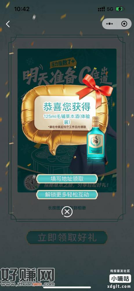 毛铺草本酒小程序刚才有水5.88红包+体验装