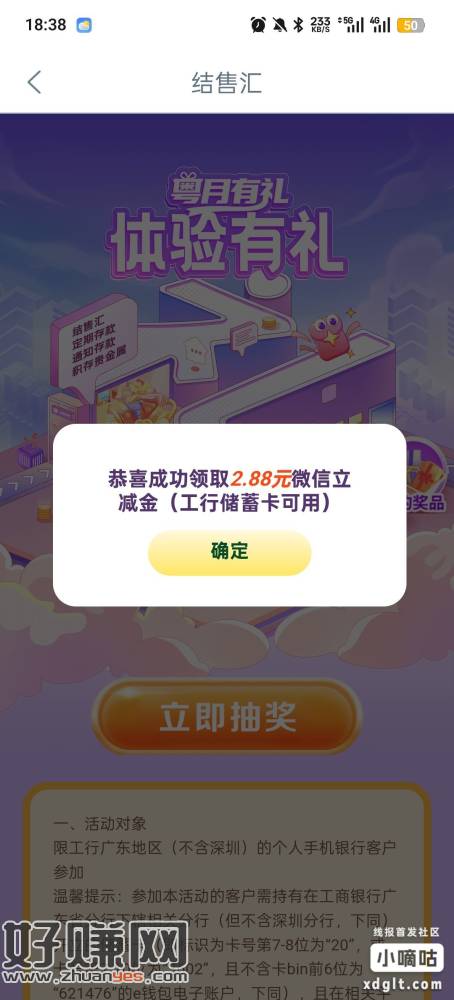 广州工行享活动有这个的也可以抽,先把外汇那个任务做了