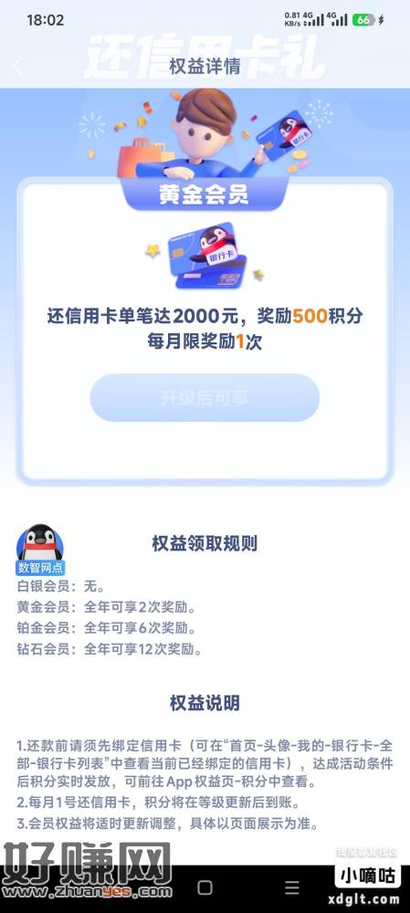 微众银行还信用卡2K得500积分、积分可以兑换京东E卡!!!