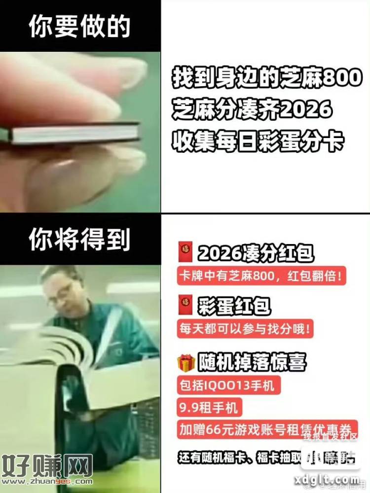 凑分2026,分数卡中有芝麻800奖金翻倍哦 每日彩蛋解谜,找到答案分卡彩蛋红包 凑分阶段随机掉落奖励,福卡、券码、还有全王者荣耀皮肤手机优惠租,更有可能得到IQOO13手机哦!