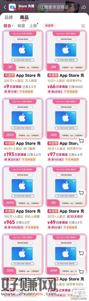 抖音电商APP苹果礼品卡旗舰店10面额-9元刚需支持其他面额-