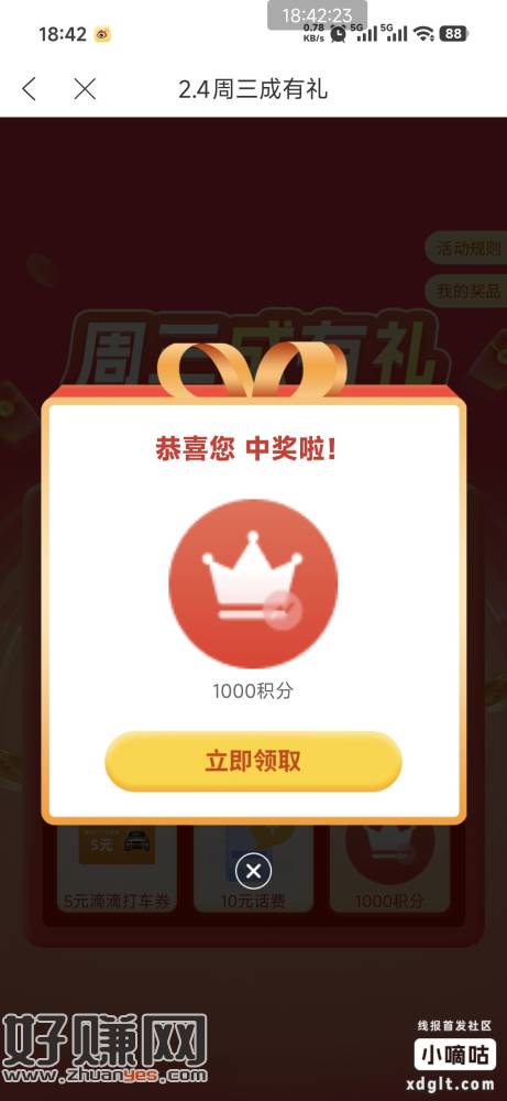 大成基金,周三成有礼以前玩过的玩,奖品一般1000积分折算1元价值