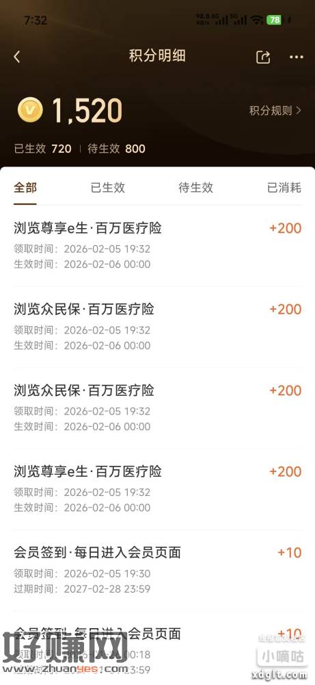 众安保险APP积分页面有800积分可以领,之前玩过红包雨有200积分以上的,明天可以兑换1