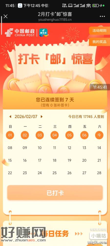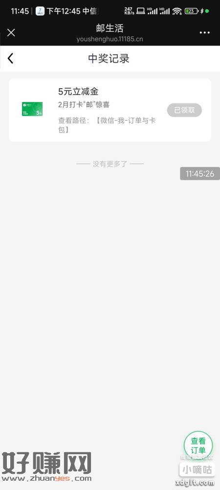 微信邮生活公众号,签到7天,我领到了5块钱的微信立减金