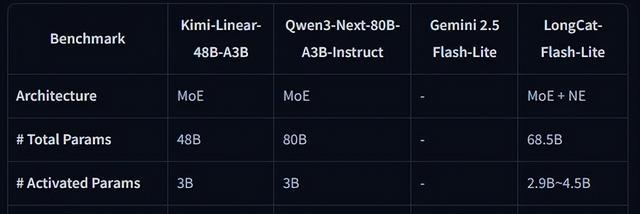 首先要指出,LongCat-Flash-Lite 总参数规模为 685 亿,激活参数为 29-45 亿,通过 YaRN 支持最长 256 K 上下文,并通过集成 N-gram 记忆表,实现在性能上超越了参数量等效的 MoE 基线模型,尤其在智能体与代码能力表现突出。