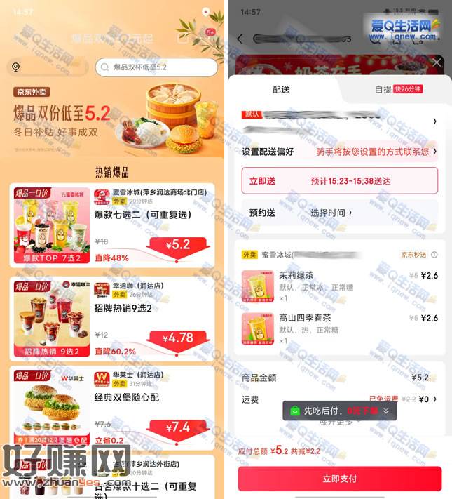 京东奶茶5.2💰两杯配送到家