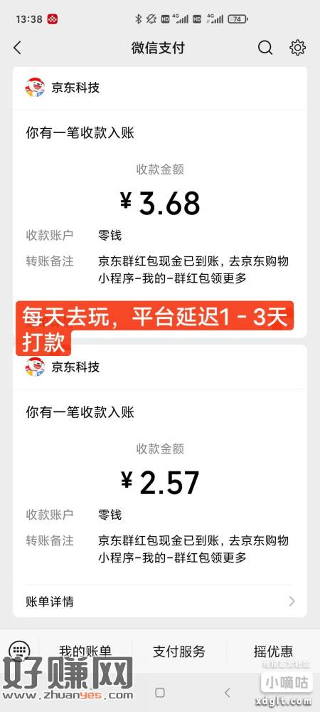 转发好友拆红包,每天有玩,不秒到,可能1-3天不等,今天收到打款了(金额可能累积的)