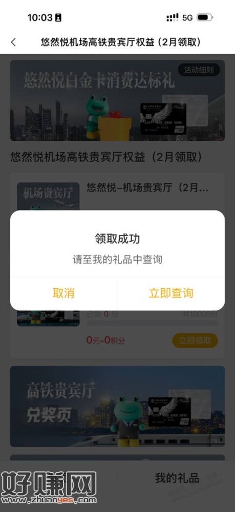 【中国农业银行】尊敬的客户,您名下悠然悦白金卡已于上月消费达标,满足“2026年悠然悦白金卡消费达标礼”领取条件。可于本月10日起至本月末每天10点起在“掌银APPxing/用卡-优惠-新客礼-悠然悦卡机场高铁贵宾厅权益(2月领取)”二选一领取高铁贵宾厅(2人次)/机场贵宾厅(1人次)权益。逾期未领将失效,不再补发。礼品数量有限,活动细则详见农行官网。