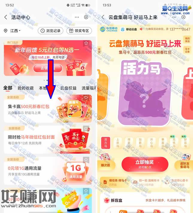 移动云盘集卡赢最高500元新春红包