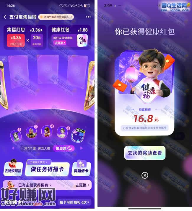 有机会获得16.8元的支付宝红包,获得之后秒到支付宝APP卡包哦