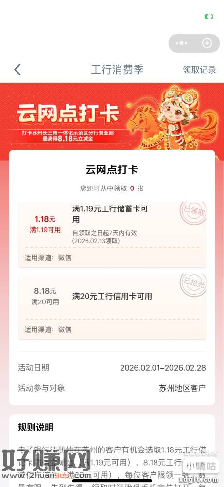 苏州云网点打卡 不限卡立减金,这种是不是必须有对应地区的卡才能领?不然就是壁纸?#小程序://工行服务/LEbvaBn7FDdhLUB