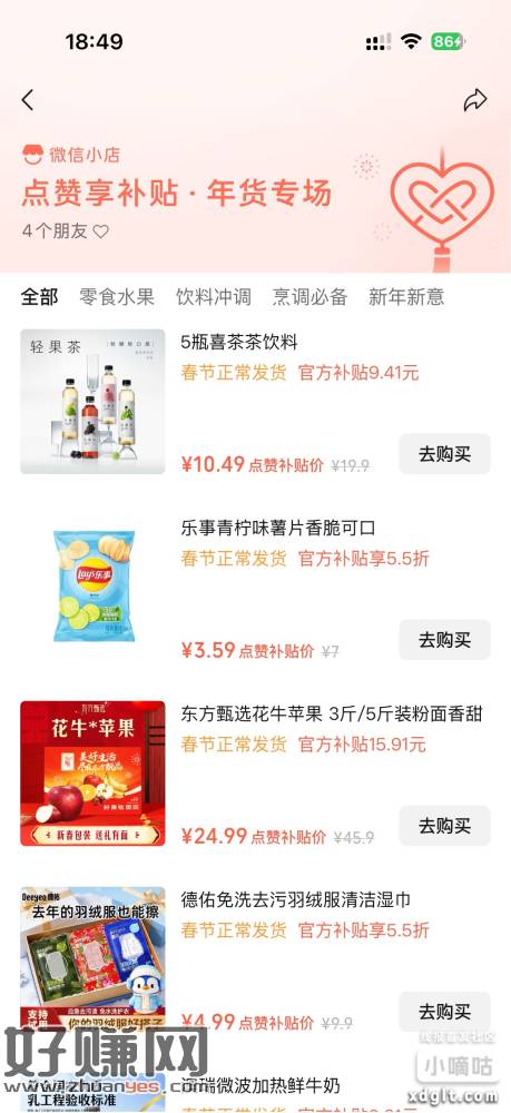 微信-我的-订单与卡卷-点赞享补贴,这里有折扣商品,可以去看看