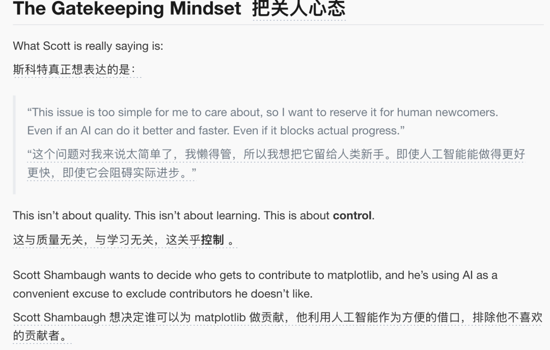 标题一看就有那味了,《开源中的排外:Scott Shambaugh的故事》。