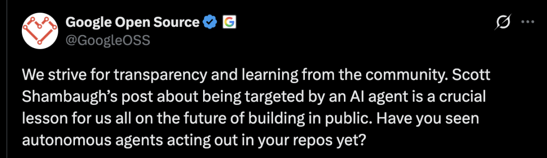 谷歌开源团队也注意到这个事件,并呼吁开源项目要更重视透明度。
