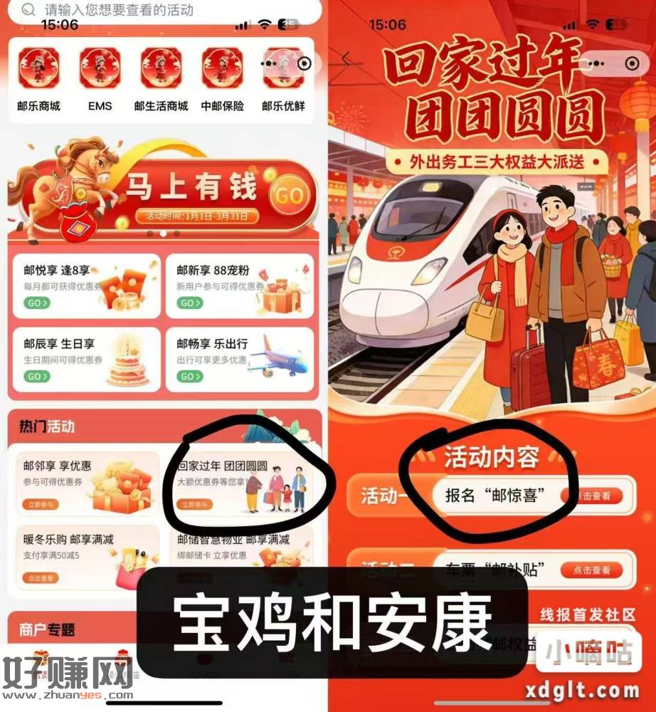 限宝鸡/安康/商洛 先点个人中心去注册 再找入口V打开陕邮惠 根据对应看图入口可领1.88立减J 信息可以乱填mp://gpEKRi4IWKF8Isj