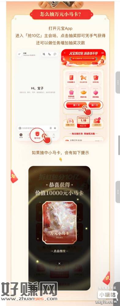 元宝次数没抽的先留一下除夕到,追加100张万元现金小马卡下午4点来元宝APP一起领压岁钱#元宝追加100张万元小马卡#