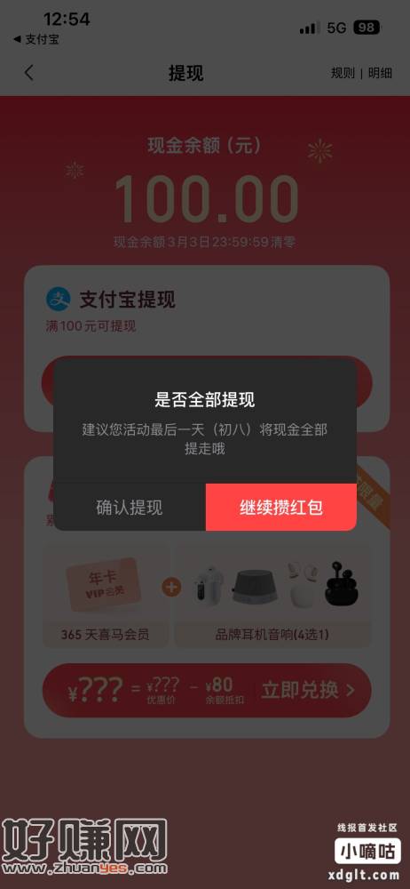 满一百提,我现在已经有一百可以提现了,但是我想攒到初八一起提现