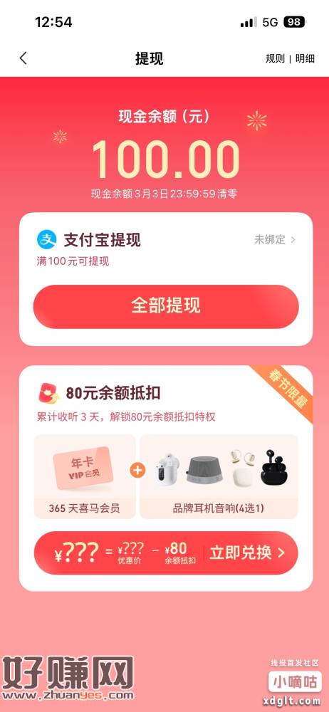 喜马拉雅首页抢红包 100 元