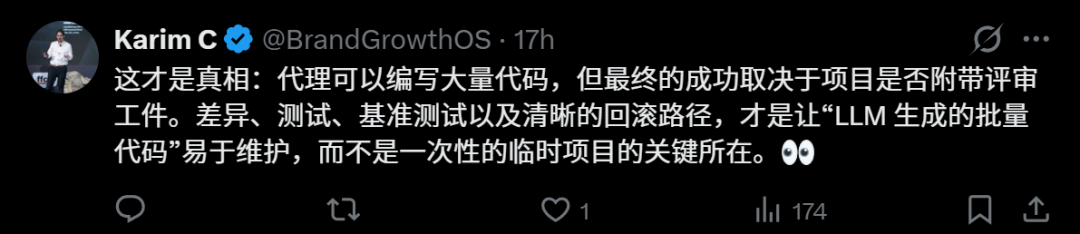 当然,AI智能体虽然可以编写大量代码,但最终成功与否,还要取决于项目是否附带评审。