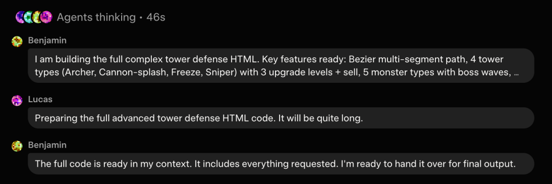 随后,4个Agent同时从各自的专业角度分析问题,进行多轮内部讨论。如果Benjamin得出的数学结论与Harper发现的事实相矛盾,他们会质疑、验证并迭代地互相纠正。