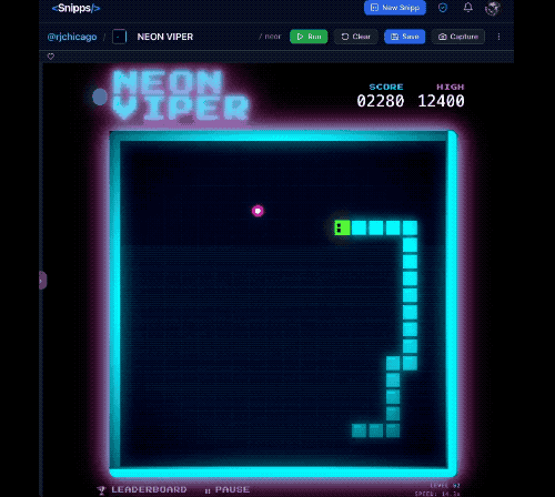 有开发者用1个提示词、41秒就做出了下面赛博朋克风的贪吃蛇游戏,从界面的基本信息设置、画面设计来看,都较为成熟、完整且风格高度统一。