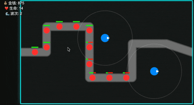 最后,我让Grok 4.2测试版“用JavaScript生成一个网页版基础塔防游戏,核心功能要包含放置炮塔、怪物移动、攻击判定”。