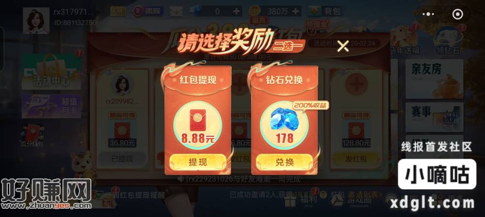 微乐广东麻将小程序新人,先去鱼出头,大概5出,再去小程序里胜三局,再和收头的人打二局自建房,又有5r,之后可以拉小号玩,拉第一个包大概18.8,拉第二个包大概是8.8,第二个包好像今天没有了明天应该可以领