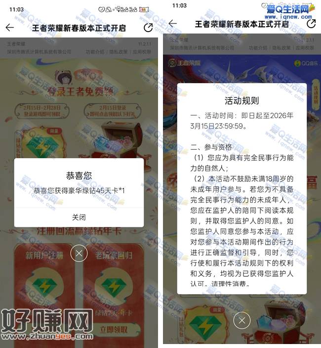 亲测45天豪华绿钻秒到 QQ音乐王者登录抽奖即可