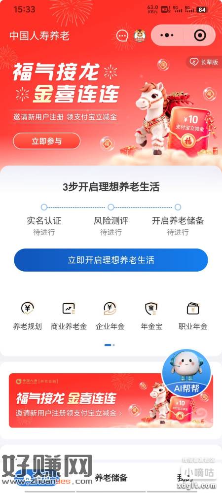 wx国寿养老小程序 首页横幅 注册领2zfb立减金 拉人也有 好像也是2 太卡了 没看