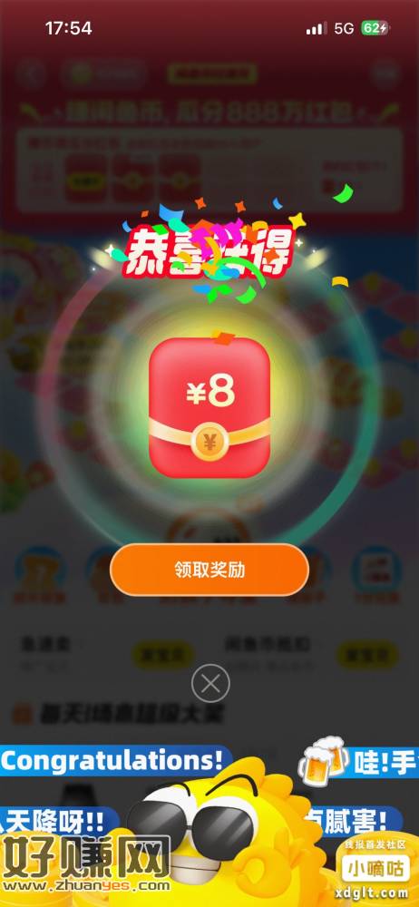 闲鱼 有时间的去做任务赚骰子转了两次抽到 8 元无门槛买了 10e 卡只花了 1 块多