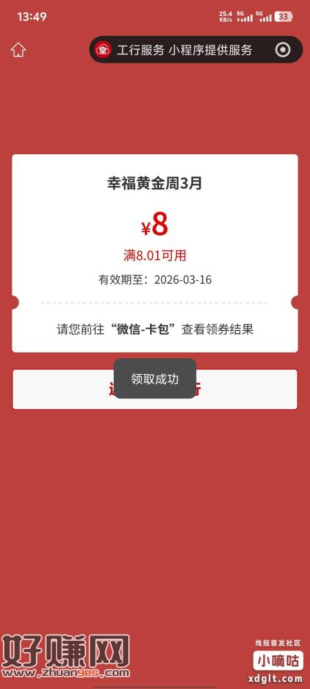 工行有个幸福黄金周,买1克可以抽个奖,8块钱的立减金。赎回的话要五块多,也可以放着等看能不能赚回来。