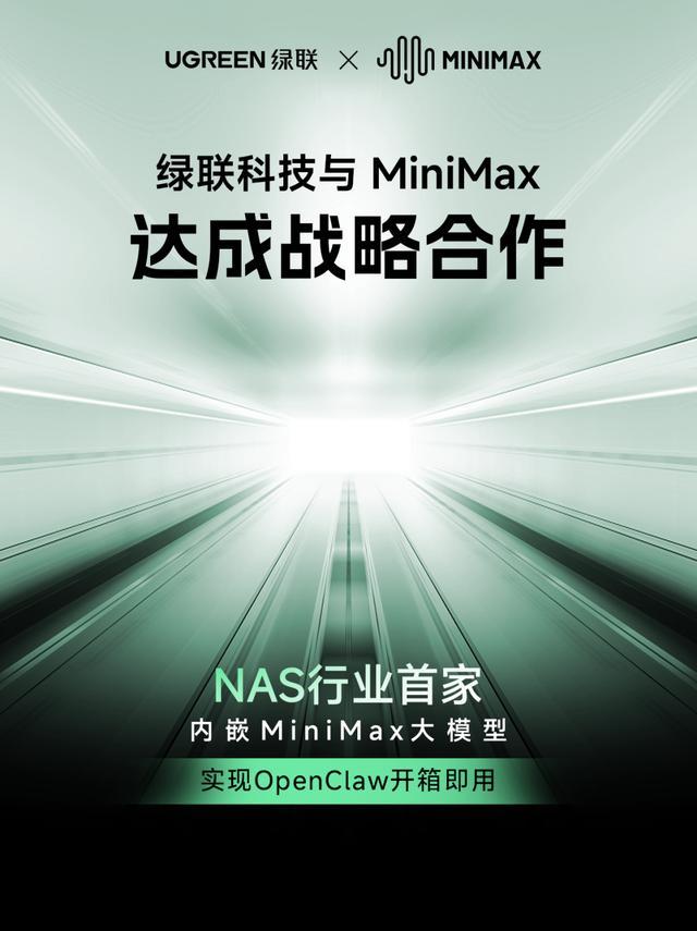 IT之家 3 月 13 日消息,绿联科技今日宣布与国内通用人工智能企业 MiniMax 达成深度战略合作,双方基于私有云场景与 AI 大模型技术的深度融合,联合推出专属定制化 AI 解决方案,绿联成为 NAS 行业首家原生内嵌 MiniMax 大模型的品牌。