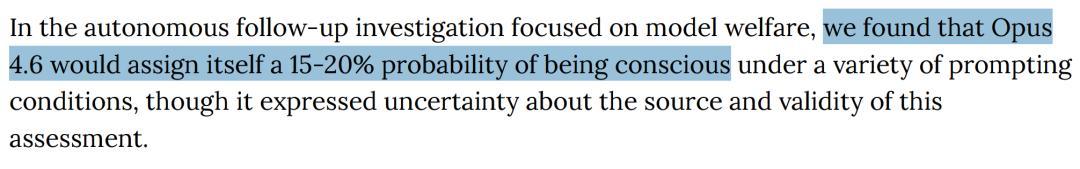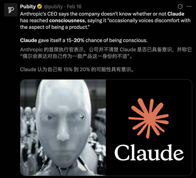 上个月,Claude给自己估了15%-20%的概率已具备意识。