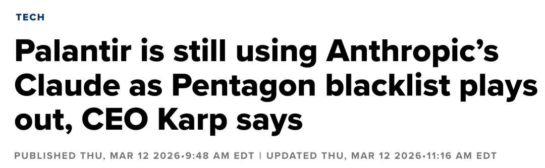 但讽刺的是,Palantir坦承,现在还在用Claude,难以一夜之间拔掉网线。