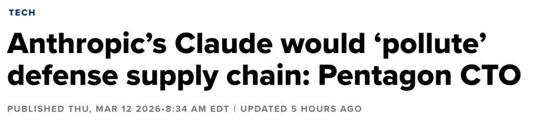 在CNBC独家报道中,五角大楼给Claude直接定性为,会「污染」国防供应链。